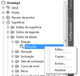 - No Toolspace, na guia Configurações, clique com o botão direito do mouse em um nome de estilo de tabela , e clique em .