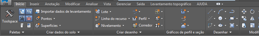 A faixa de opçõesAutodesk Civil 3D é a principal interface do usuário para acessar comandos e recursos.