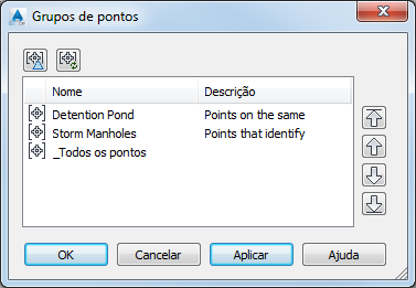 A ordem de exibição do grupo de pontos para um desenho determina a ordem na qual os grupos de pontos são desenhados quando um desenho é aberto ou gráficos são regeneradas. O primeiro (maior) grupo de pontos na lista é desenhado por último.
