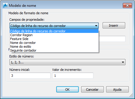 Além disso, para as propriedades Nome do estilo e Próximo contador, é possível especificar diversas propriedades para os nomes de linha do recurso que ajudam a identificá-las em relação ao corredor principal, incluindo o Código da linha do recurso do corredor, Nome do corredor, Região do corredor Lado do recurso.