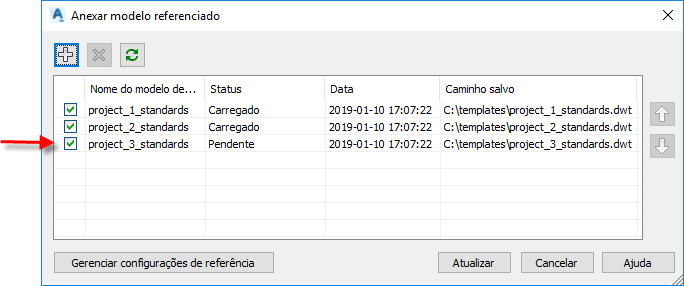 Se a geometria de uma rede de tubulação ou os nomes ou as descrições das tubulações ou das estruturas tiverem sido alterados no desenho de origem, a rede de tubulação de referência a dados será sincronizada automaticamente quando você abrir o desenho principal. Nota: Esta é a configuração padrão.