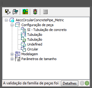 Para tubulações, o tipo de peça predefinida é sempre “tubulação”. Uma variedade de formas de tubulação pode estar disponível; por exemplo, em forma oval, elíptica e retangular. No entanto, todas elas são definidas com o mesmo tipo de peça (tubulação).