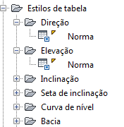 Clique na caixa +/- para expandir a coleção e ver os estilos de tabela para o objeto. Alguns objetos têm vários níveis de estilos de tabela.