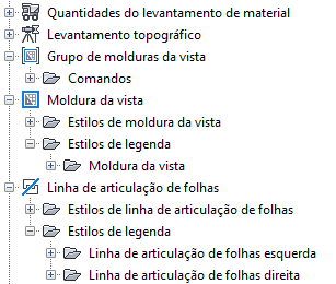 Grupos de moldura da vista são objetos não gráficos que gerenciam uma coleção de molduras da vista e linha de articulação de folhas. No nível de grupo da moldura da vista, é possível definir os padrões de estilo de legenda e exibição para molduras da vista e linha de articulação de folhas. |