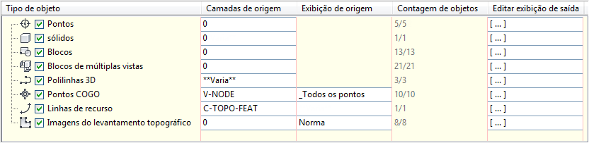 Use as opções na parte inferior da caixa de diálogo Projetar objetos para múltiplos gráficos de seção para selecionar os tipos de objetos a serem projetados e para especificar opções para filtragem da seleção.