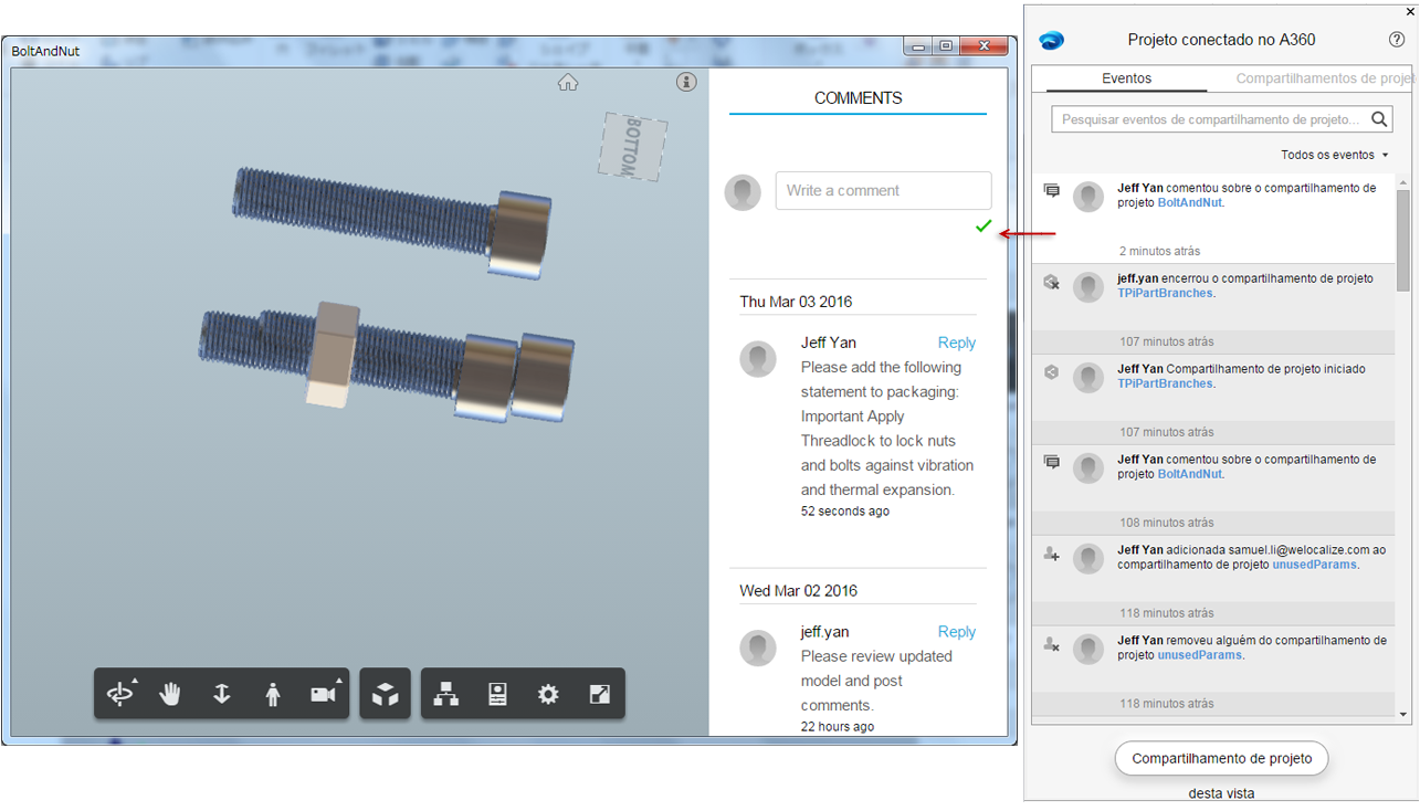 Os comentários do Compartilhamento de projetos estão agora disponíveis no Inventor