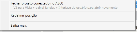 - Agora é possível mover o botão de entrada de Projeto conectado para a localização na janela de desenho que funcione melhor para você. Também é possível mover o botão de entrada de Projeto conectado de volta à posição padrão usando o novo menu de contexto no botão de entrada de Projeto conectado.