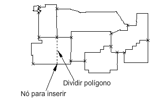 As edições nesta topologia de polígono consistem em Para adicionar um nó em uma topologia e, a seguir, em dividir o polígono com um vínculo.