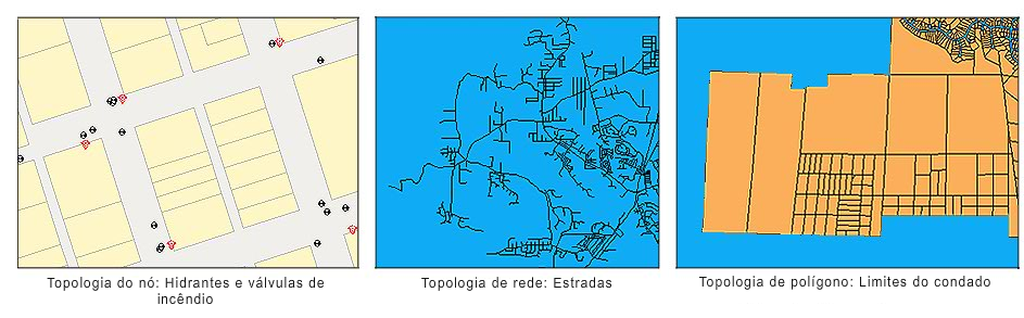 Um exemplo de topologia de rede é um aplicativo de distribuição de água que traça o fluxo de água a partir de uma estação de bombeamento para residências. Uma rede de ruas é outro exemplo. Para topologias da rede, é possível especificar a direção para um vínculo e especificar a resistência para um vínculo ou nó.