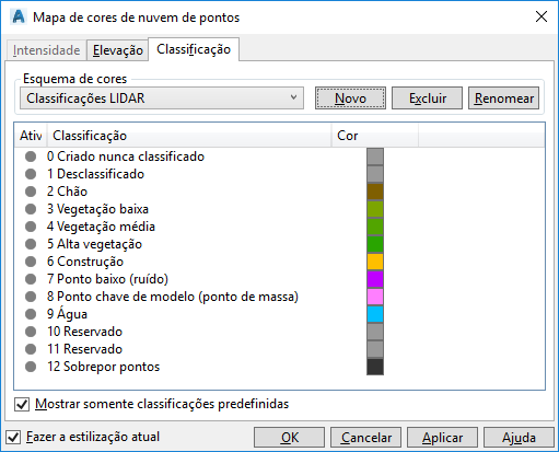 Mapa de cores da nuvem de pontos. Se os dados necessários não existirem na nuvem de pontos, a opção será esmaecida no menu suspenso de estilização.