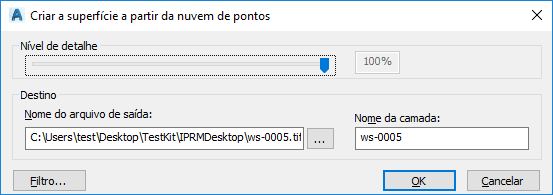 - Clique nos dados da nuvem de pontos no desenho. Pressione Enter para concluir a seleção. A caixa de diálogo Criar superfície a partir da nuvem de pontos é exibida.