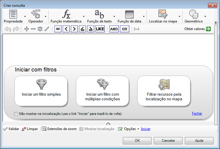 É possível filtrar ou selecionar dados com base no valor de uma ou mais propriedades. Uma expressão simples avalia uma única propriedade, mas você pode criar expressões complexas que usam múltiplas propriedades ou múltiplos valores. Por exemplo, você poderia criar uma expressão que mostra municípios com uma população de mais de 50.000, mas abaixo dos 100.000. O resultado de uma expressão de filtro deve ser um valor booleano. |