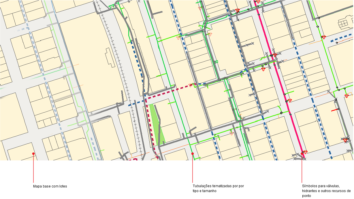 Este mapa de um sistema de distribuição de água é composto de operações armazenadas em um conjunto de arquivos SDF.