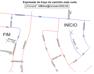 Para executar a análise do traço do caminho da rede em uma rede de estradas com base no tempo em vez de distância, atribua uma velocidade ou limite de velocidade para cada vínculo usando um campo de dados de objeto ou um campo em um banco de dados externo vinculado. A seguir, defina a propriedade de Resistência direta do vínculo para uma expressão que utilize este dado de limite de velocidade. Por exemplo: