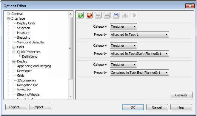 - Expanda o nó Interface no Options Editor, expanda a opção Quick Properties , e clique em Definitions.