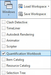 A interface de usuário (UI) do Quantification consiste em uma Quantification Workbook, um Item Catalog e um Resource Catalog. Os catálogos definem a estrutura organizacional do seu projeto e geralmente contêm grupos de itens e materiais que serão utilizados para o levantamento. É possível abrir qualquer quantidade dessas janelas em uma sessão.