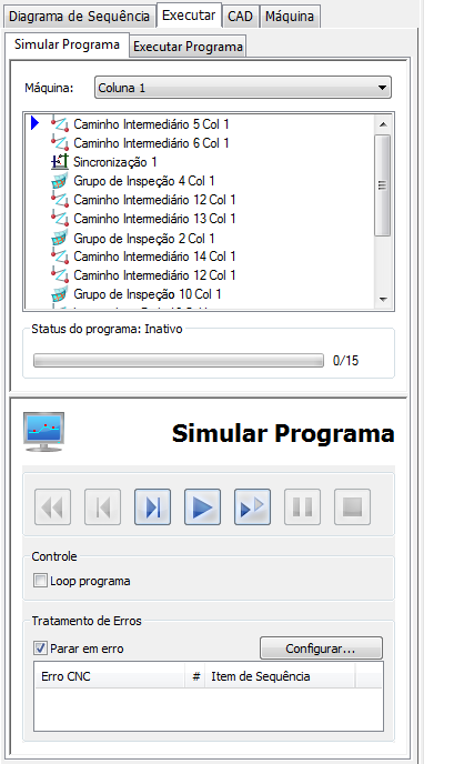 - Utilize os botões no diálogo Simular Programa para simular a sequência de inspeção. Por exemplo, para simular todos os itens atribuídos à coluna selecionada, clique em Executar Todos os Itens