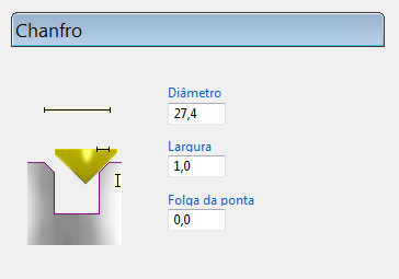 Nota: Essa página somente está disponível se você configurar Operação como Chanfro na página principal de Furação.