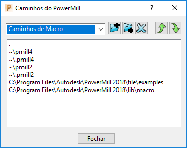 Para apagar um nome de caminho de uma lista de macro, selecione a opção Caminhos de Macro no menu de macro. Isso exibe o seguinte diálogo.