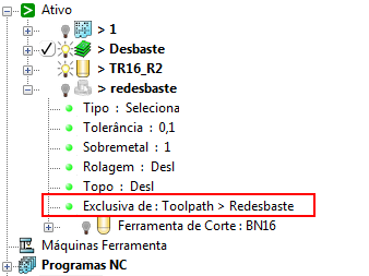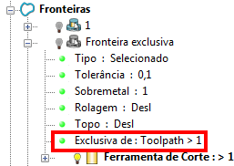 Quando você cria uma fronteira, pode indicar se deseja permitir que essa fronteira se torne exclusiva. Ainda não é exclusiva nesse estágio, mas torna-se exclusiva quando utilizada por um percurso ou modelo usinado.