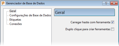 em guia Ferramenta > painel Base de Dados para exibir o diálogo Gerenciador de Base de Dados de Ferramenta.