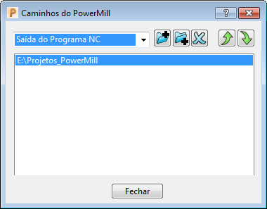Você pode definir o local do Arquivo de Saída do Programa NCutilizando o diálogo Caminhos do PowerMill. Selecione guia Arquivo > Opções > Personalizar Caminhos para exibir o diálogo Caminhos do PowerMill.