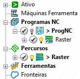 Quaisquer percursos subsequentes são automaticamente adicionados ao programa NC ativo. Desative o programa NC para que o PowerMill não adicione percursos por padrão ao programa NC.