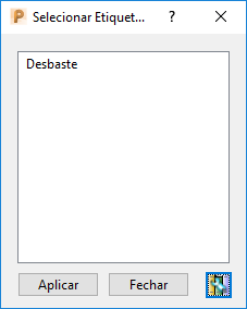 4. Clique numa etiqueta para selecioná-la, por exemplo Desbaste.
