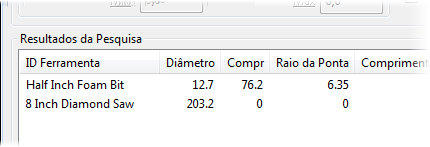 Ferramentas com a etiqueta Desbaste são exibidas na área Resultados da Pesquisa.