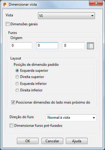 Desmarque a opção para posicionar todas as dimensões em um único lado. Para especificar a posição do texto da dimensão, selecione Esquerda Superior, Direita Superior, Esquerda inferior ou Direita inferior.