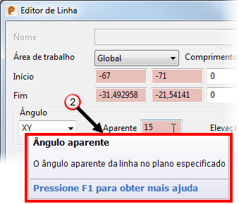 Nota: Quando múltiplas linhas em arame são selecionadas, a instrumentação gráfica é exibida somente enquanto o diálogo Editor de Linha é exibido.