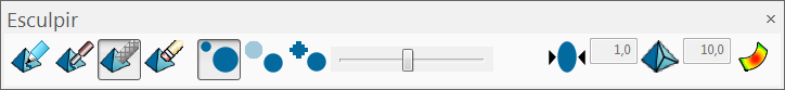Intensidade — Selecione o botão e arraste a barra deslizante (ou H + roda do mouse) para aumentar ou diminuir a quantidade pela qual cada nó é elevado ou rebaixado como uma porcentagem do raio do pincel.