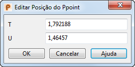 É possível editar os parâmetros t e u para alterar a posição de um ponto em uma pcurve:
