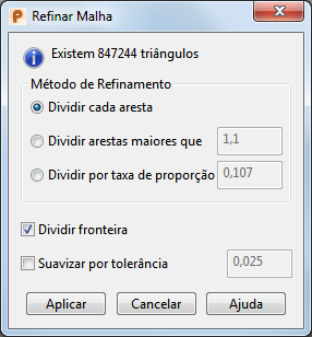 - Aplicar para refinar a malha sem fechar a caixa de diálogo. Se necessário, é possível refinar a malha ainda mais.