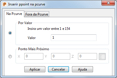 - Por Valor — Insere um ppoint num valor de parâmetro específico. Insira o valor paramétrico de onde você deseja que o novo ppoint se posicione na pcurve.