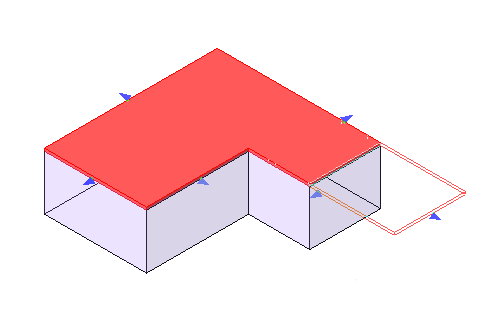 Depois de converter faces de massa para um telhado, você pode usar os manipuladores de forma para estender os limites do telhado.