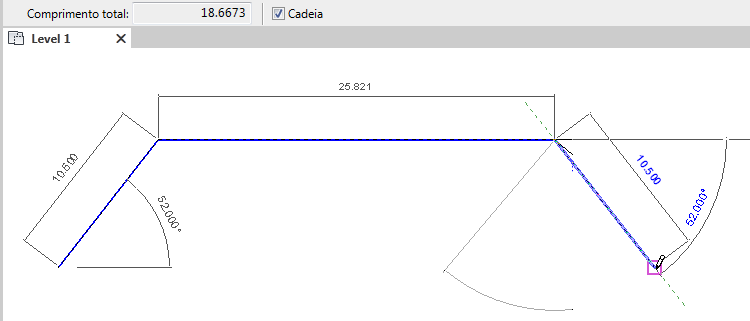 Cadeia de medição com o comprimento total exibindo na Barra de opções