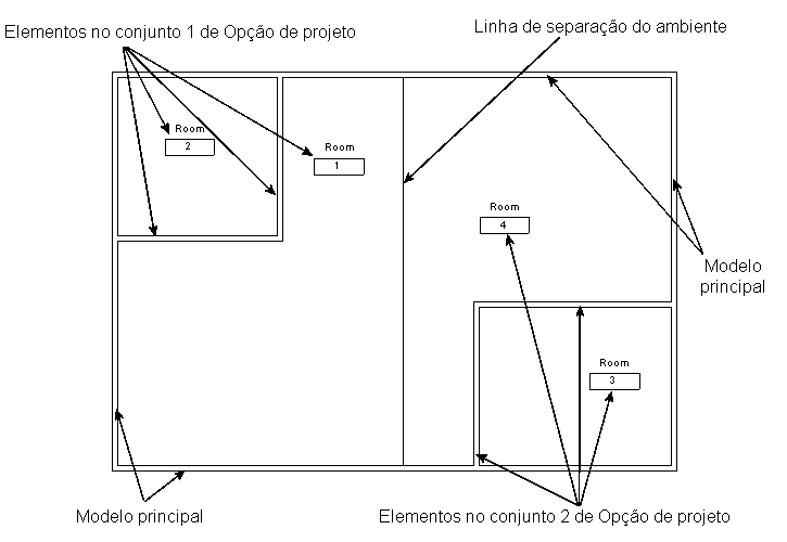 Se a forma, tamanho ou localização do ambiente for a mesma em diferentes opções, e for necessário que as propriedades atribuídas ao ambiente sejam as mesmas para todas as opções, mantenha o ambiente no modelo principal.