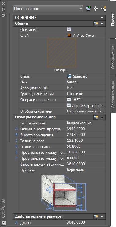 - Использование пересчитанных значений в спецификации или при учете пространств.