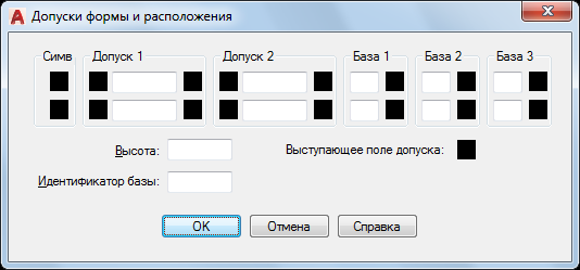 Поле для ввода буквенного обозначения базы отсчета. Базой отсчета называется элемент детали, определяющий одну из плоскостей или осей системы координат, по отношению к которой задается допуск. В качестве базы отсчета можно использовать точку, отрезок, плоскость, цилиндр или другой геометрический объект.