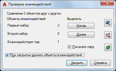 Вывод числа обнаруженных взаимодействий выбранных объектов.