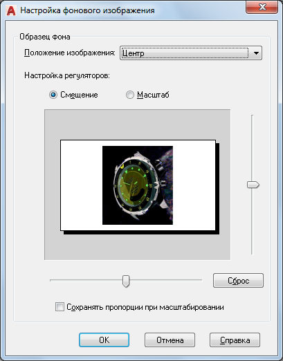Управление опциями для фонового изображения, применяемыми к именованному виду в пространстве модели.