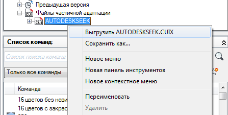 3. Щелкните правой кнопкой мыши на файле частичной адаптации CUIx, который требуется выгрузить. Нажмите "Выгрузить" < имя группы адаптации >.