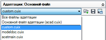 1. На вкладке "Адаптация" на панели "Адаптации <имя файла>" выберите в раскрывающемся списке файл частичной адаптации CUIx.