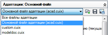 1. На вкладке "Адаптация" на панели "Адаптации <имя файла>" выберите в раскрывающемся списке "Основной файл адаптации (<имя файла адаптации>.cuix).