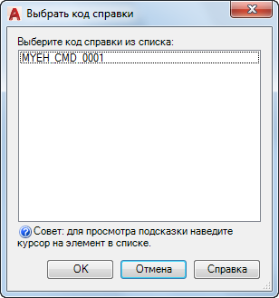 4. В диалоговом окне "Выбрать код справки" выберите код справки для содержимого дополнительной подсказки. Нажмите ОК.