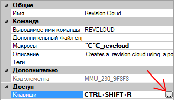 - На панели "Свойства" нажмите кнопку […] в поле "Клавиши", чтобы открыть диалоговое окно "Клавиши быстрого вызова".