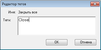 В поле "Теги" диалогового окна "Редактор тегов" введите дескриптор команды.