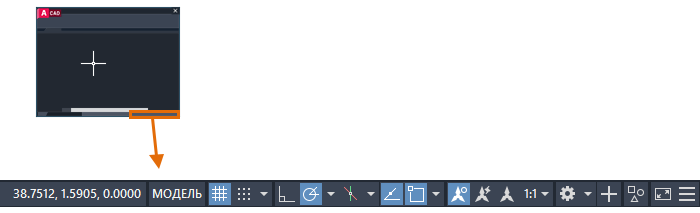 В строке состояния также возможно отображение координат курсора. По умолчанию отображение координат отключено.
