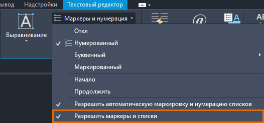 На контекстной вкладке ленты «Текстовый редактор» на панели «Абзац» выберите «Маркеры и нумерация». Выберите «Нумерованный».